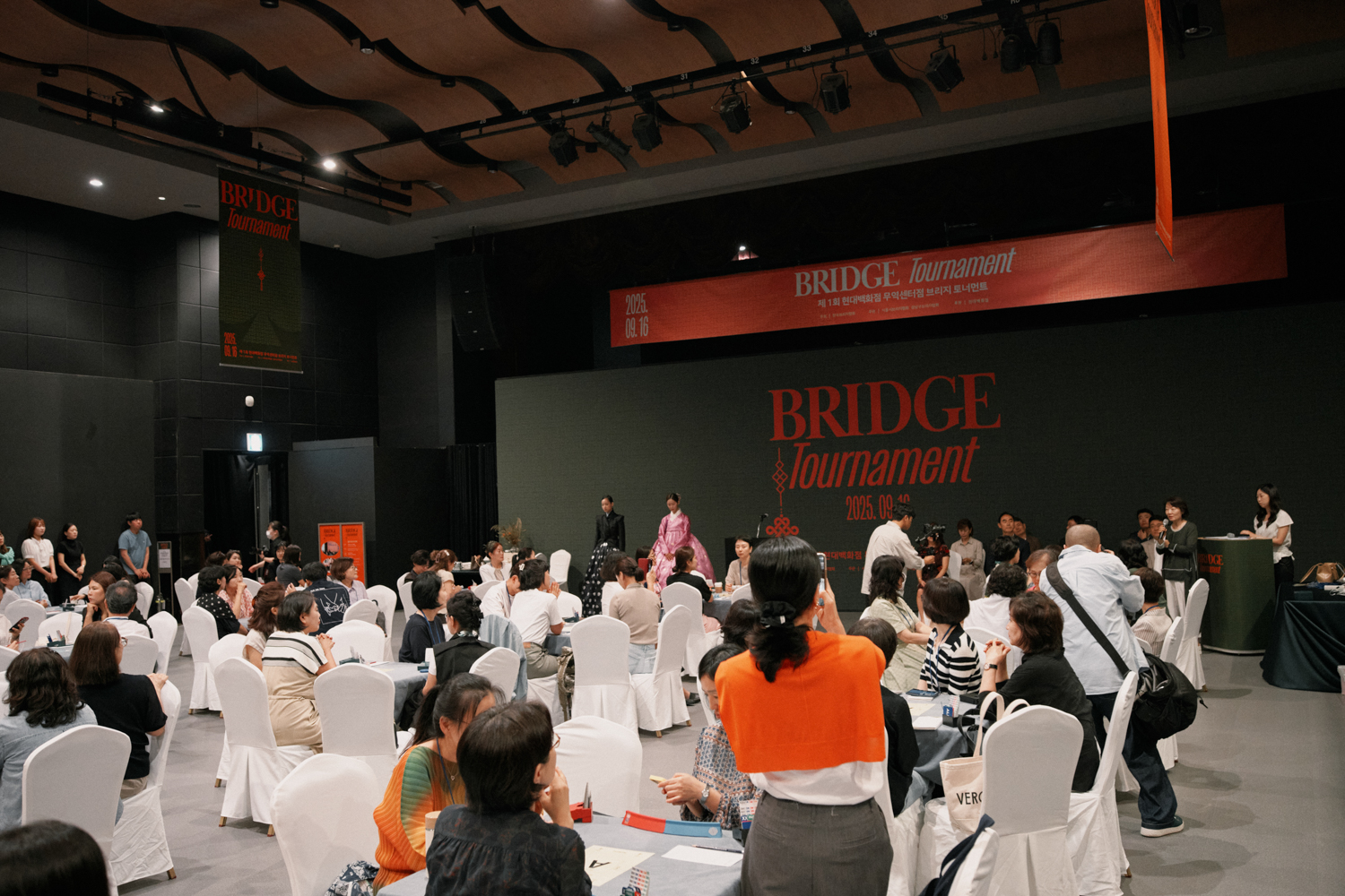 한국브리지협회가 참가자를 모집한 이번 대회에는 문화센터 수강생 포함 총 118명(56개 팀)이 참가했다. 추석을 맞아 '전통과 두뇌 스포츠의 만남'을 콘셉트로 진행됐으며, 한복을 입은 '브리지 공주' 모델들이 참가자들과 사진을 찍으며 K-브리지를 알렸다. 대회장에는 국내 유명 한복 디자이너 브랜드 '운주'가 제작한 한복이 전시돼 한국 전통미를 더했고, 한복 포토존도 운영됐다.